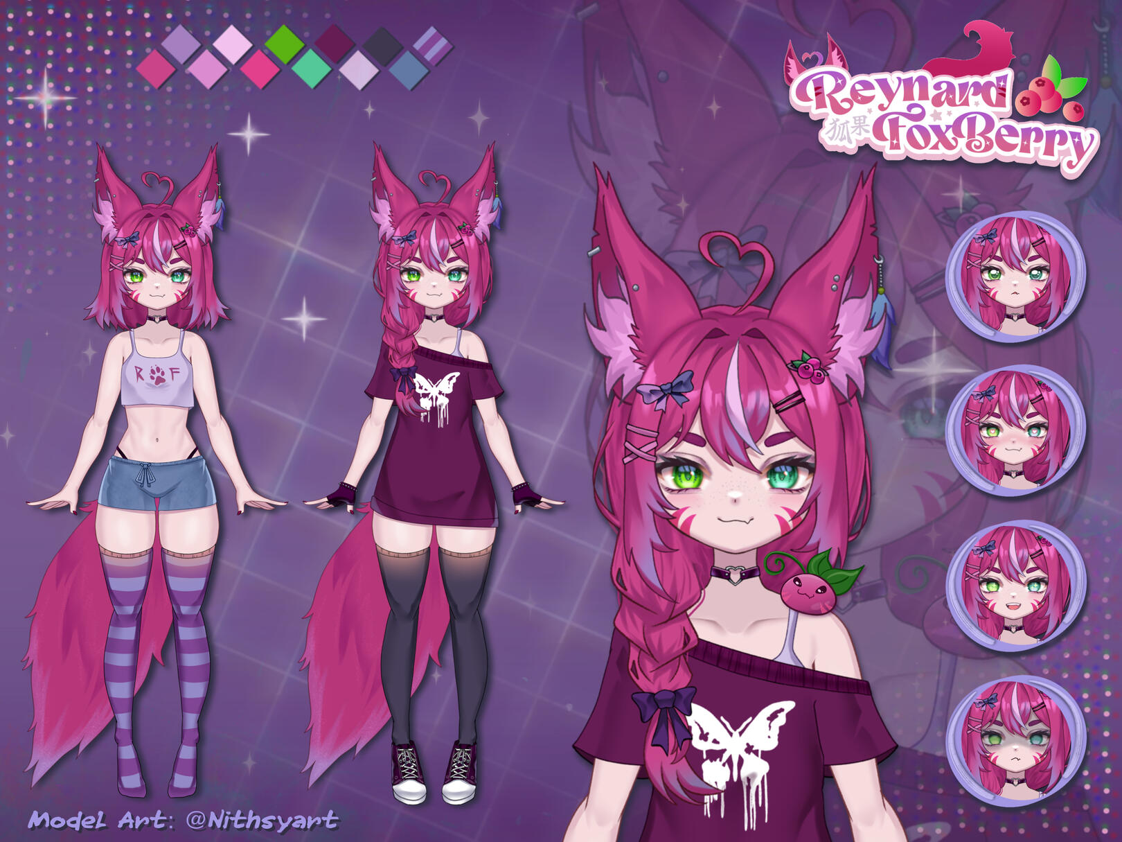 Rey is an anxious, yet very curious und quirky young one-tailed kitsune living deep in a mystical, enchanted forest. Mostly in solitude. Voluntarily you may ask? Well, he's an outcast, because he's different and didn't get along with the other kitsunes that well.His adventurous nature lead him to the edges of his home where he encountered an old alchemist looking for herbs and other ingredients. At first Rey was afraid, he had some pretty bad experiences with humans. But that man had a friendly and calm aura, which intrigued the fluffy fox.Long story short, he befriended that old man, learned to take a human form to help him with his exciting experiments. He found a new home and a very good friend!After the alchemist sadly passed away, Rey was heartbroken for a long time... but live must go on and hungry for more knowledge he decided to explore the world with all its beauty and cruelty and study nature and its sciences.Interacting with humans was still difficult for him, which made his journey exhausting at times. One day he came across this weird, but interesting thing called THE INTERNET! To study it more effectively and also in hopes of finding moots and precious friends along the way, he became something what's commonly known as a VTuber!Luckily the silly berry fox wasn't completely on his own, since he befriended a sassy demon called Freya on one of his strolls through the enchanted forest. She helped him on his endeavours wherever she could.